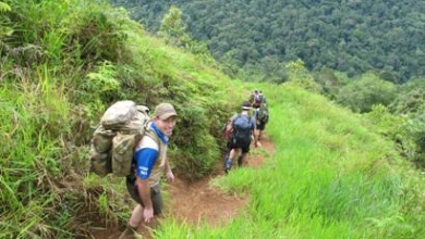 This morning the group trekked up to Ioribaiwa Ridge where they visited the Japanese trench system. They have set up camp for tonight along the glistening waters of Ofi Creek.